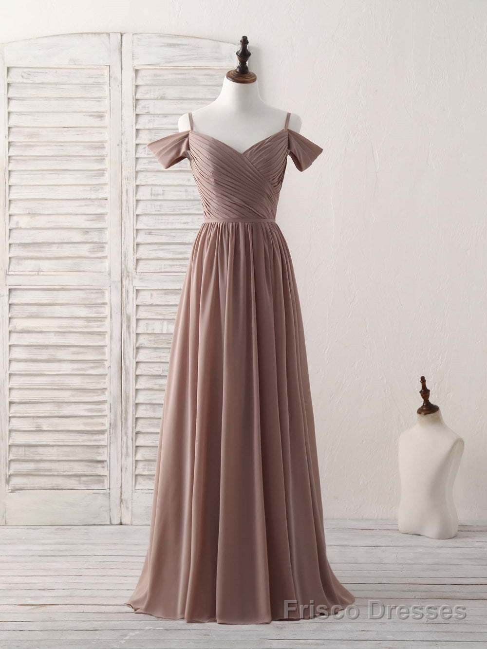 Simple V Neck Dark Champagne Chiffon Long Prom Dress, Bridesmaid Dress