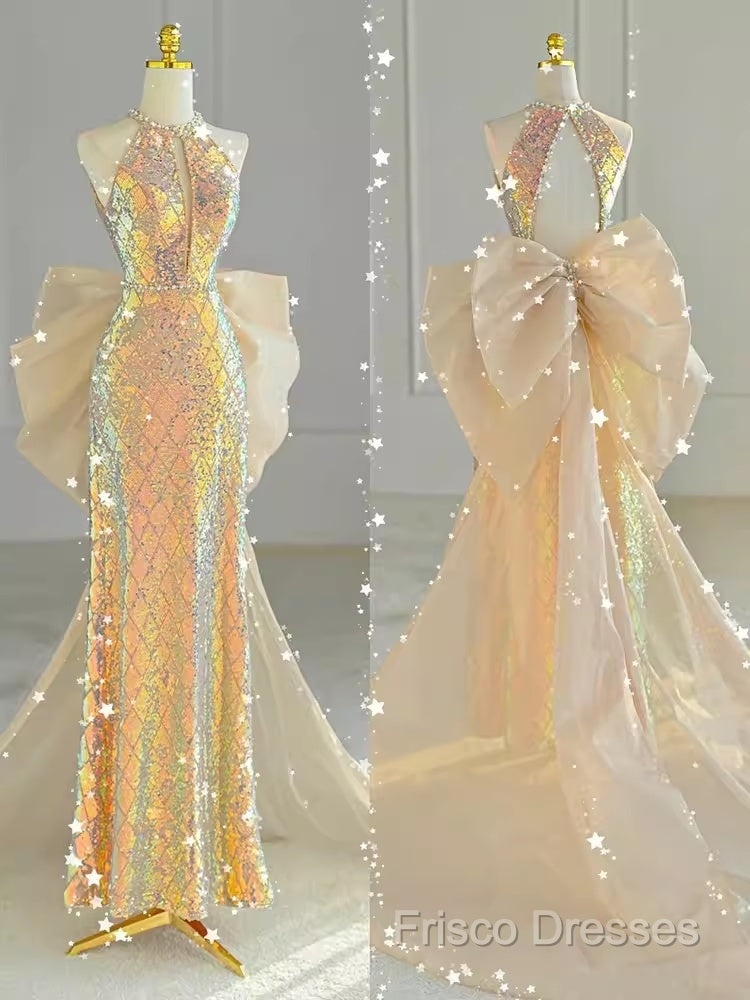 Sparkle A Line Scoop Neckline Sequin Gold Long Formal Prom Dress
