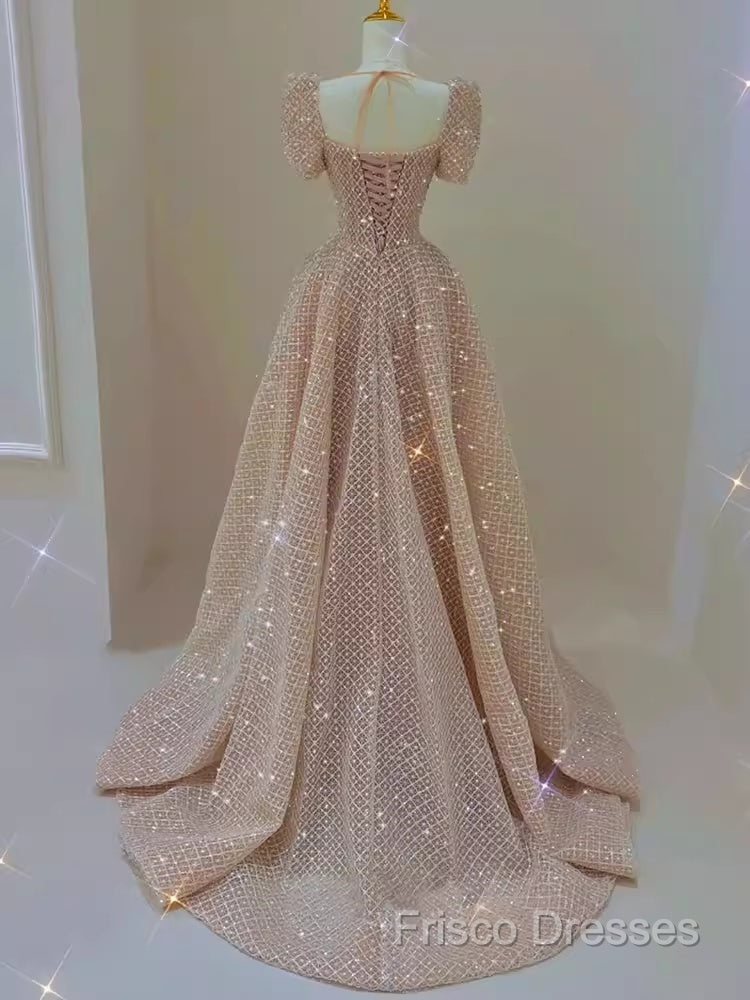 Sparkle A Line Square Neckline Sequin Pink Long Formal Prom Dress