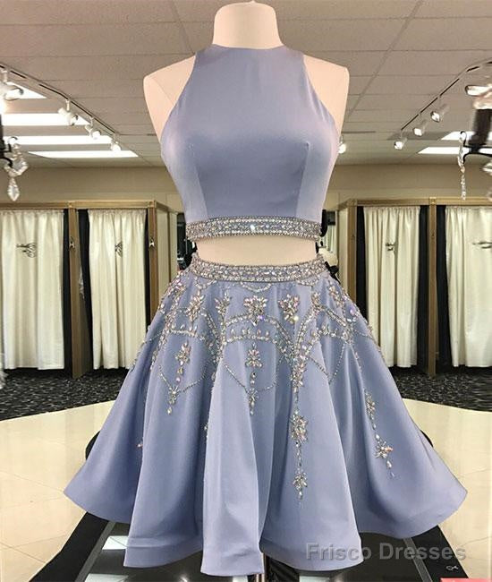 Sparkle Blue Two Pieces Beads Sequin Short Prom Homecoming Dress