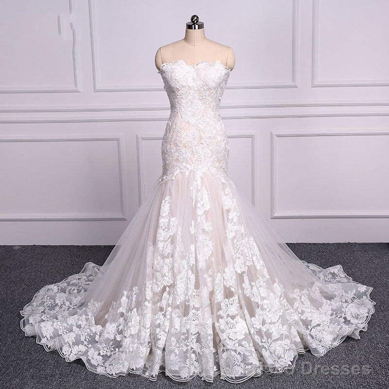 Strapless Mermaid Lace Wedding Dresses Trumpet Bride Dress