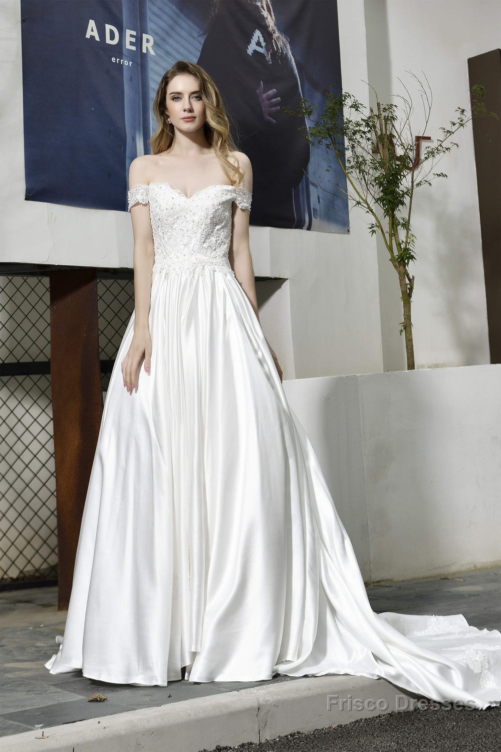 Strapless Off shoulder Appliques Sequins Satin Wedding Dresses