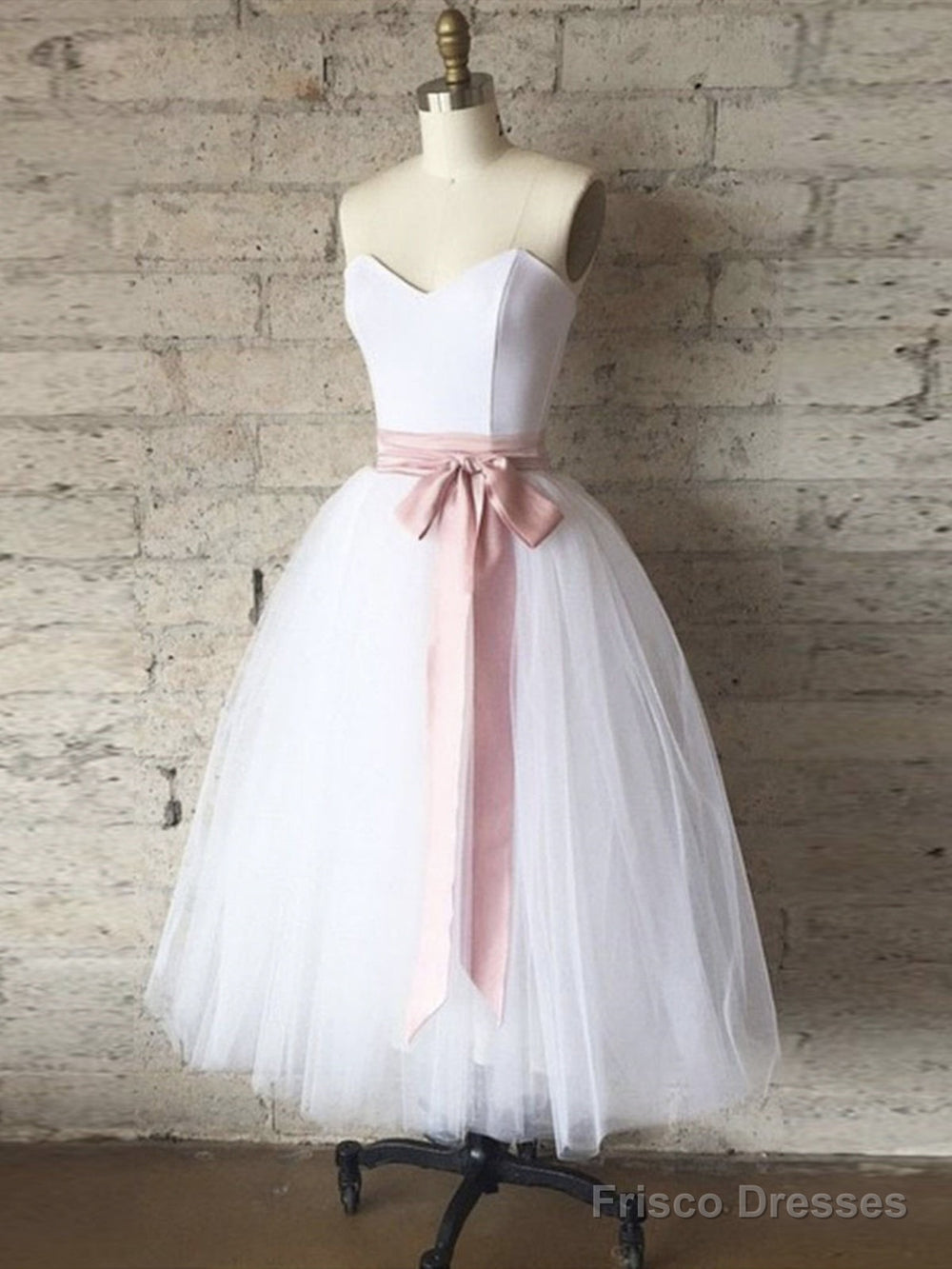 Strapless Sweetheart Neck Short White Prom Dresses, Short White Formal Graduation Dresses