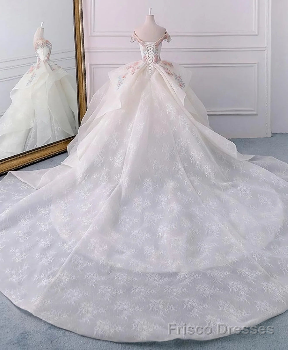 Stunning Off The Shoulder Flower Ball Gown Lace Wedding Dress