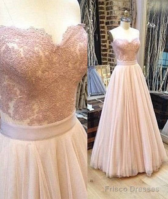 Sweetheart Neck Tulle Lace Long Prom Dress, Lace Evening Dress