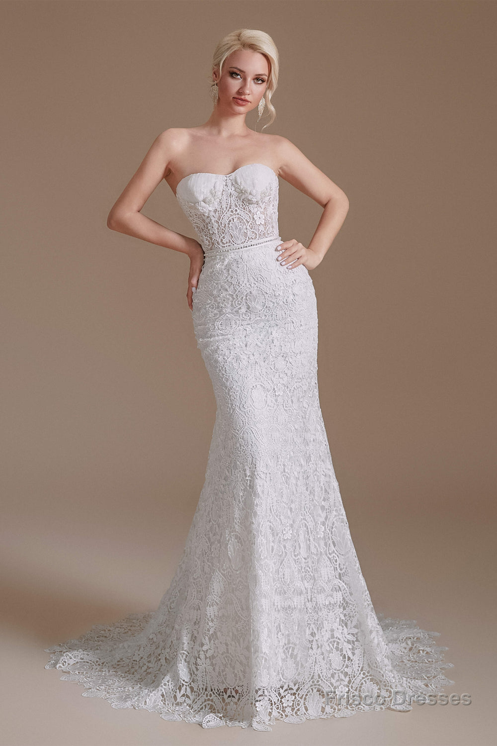 Sweetheart Puff Sleeve Off the Shoulder Lace Long Wedding Dresses