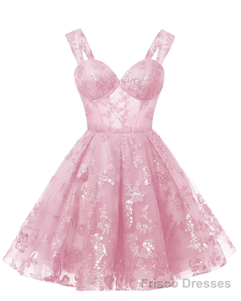 Teens Sparkly Tulle Light PinkHomecoming Dresses Spaghetti Straps Short Cocktail Party Prom Dress