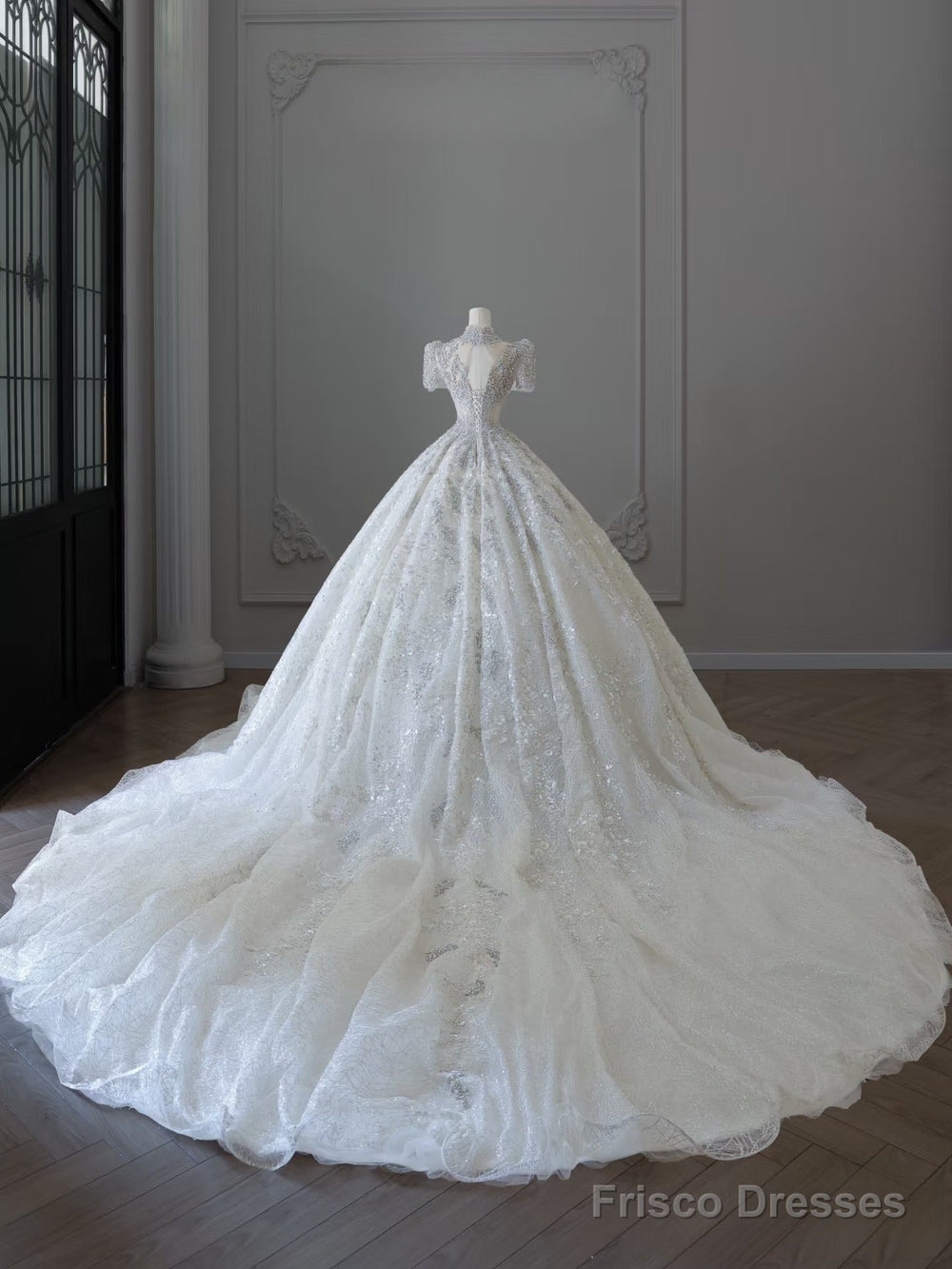Timeless Ball Gown Jewel Neckline Sequin Half Sleeves Wedding Dress Bridal Dresses