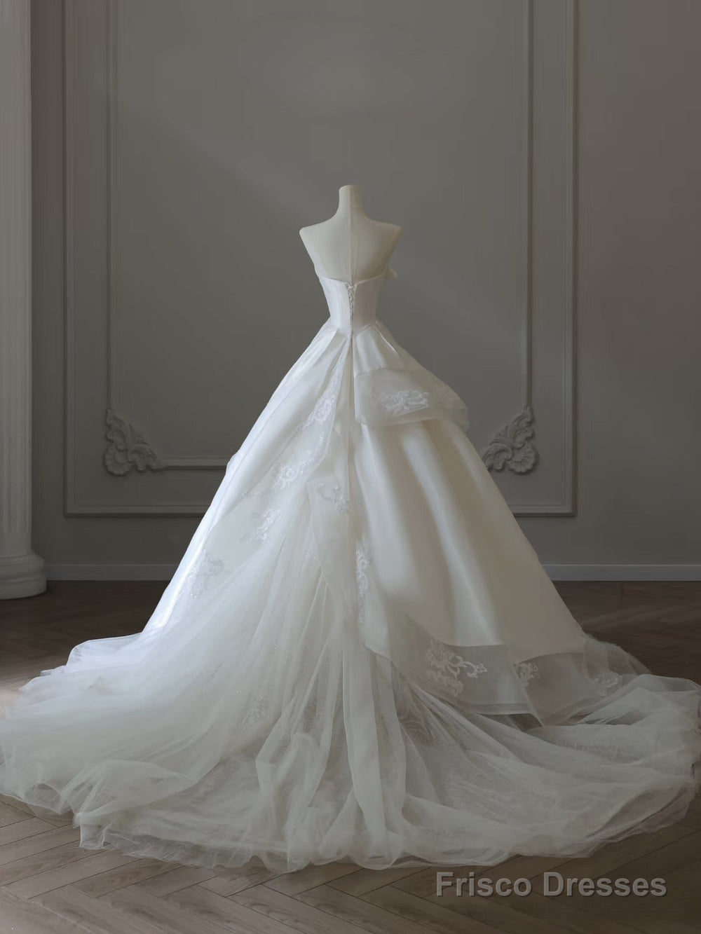 Timeless Ball Gown Strapless Satin Ivory Long Wedding Dress Bridal Dresses