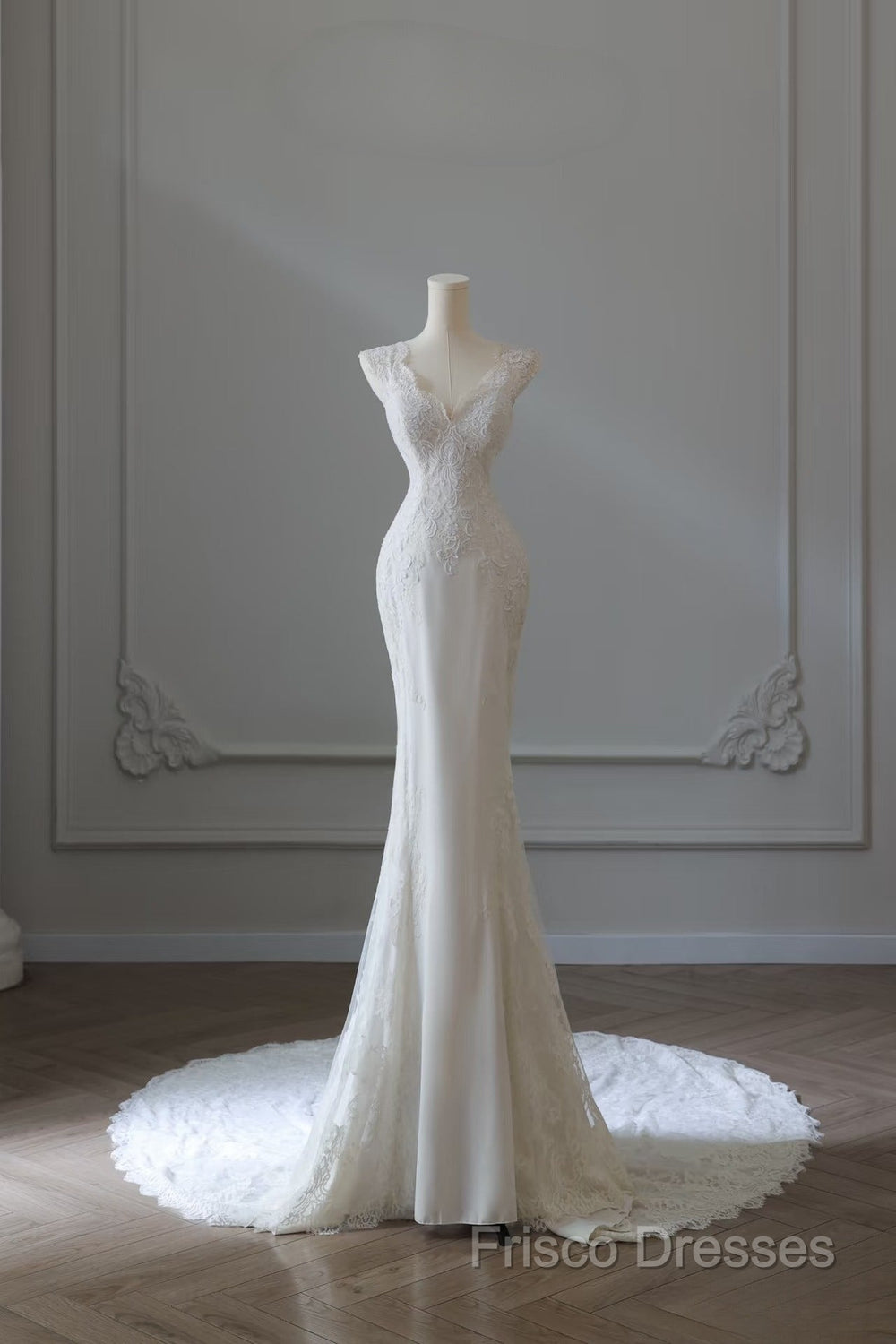 Timeless Mermaid V Neckline White Lace Wedding Dress Bridal Dress