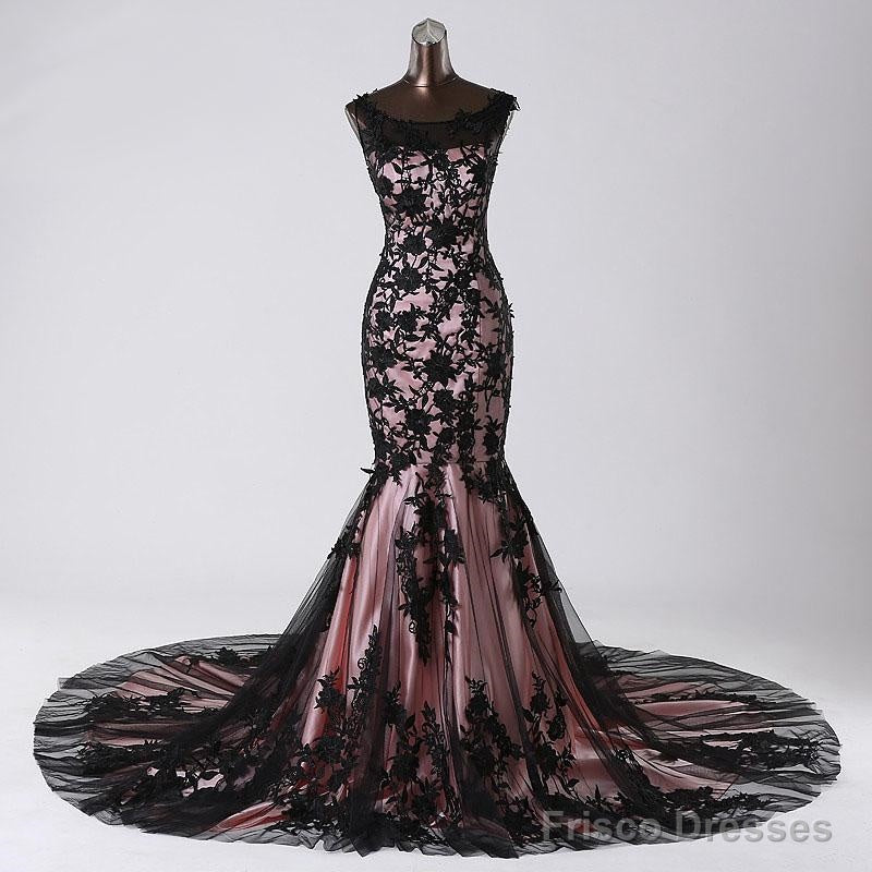 Top Black Lace Mermaid Prom Evening Gowns Sleeveless