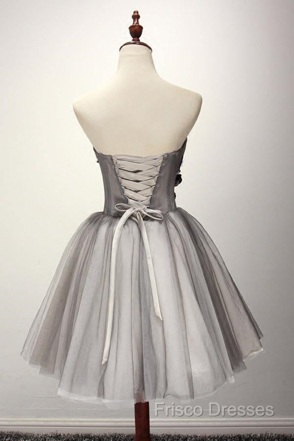 Tulle Gray Short Formal Prom Dress Homecoming Dress Coktail Dress