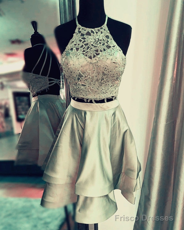 Two Piece Homecoming Dresses Lace Crop Open Back