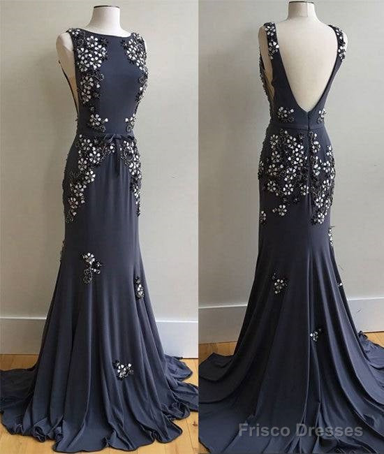 Unique Applique Chiffon Long Prom Dress, Backless Evening Dress