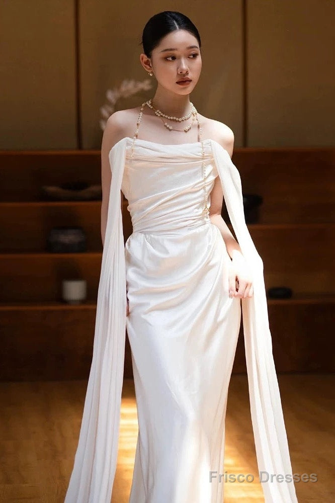 Unique Mermaid Strapless Satin Pleats White Ruffles Wedding Dresses