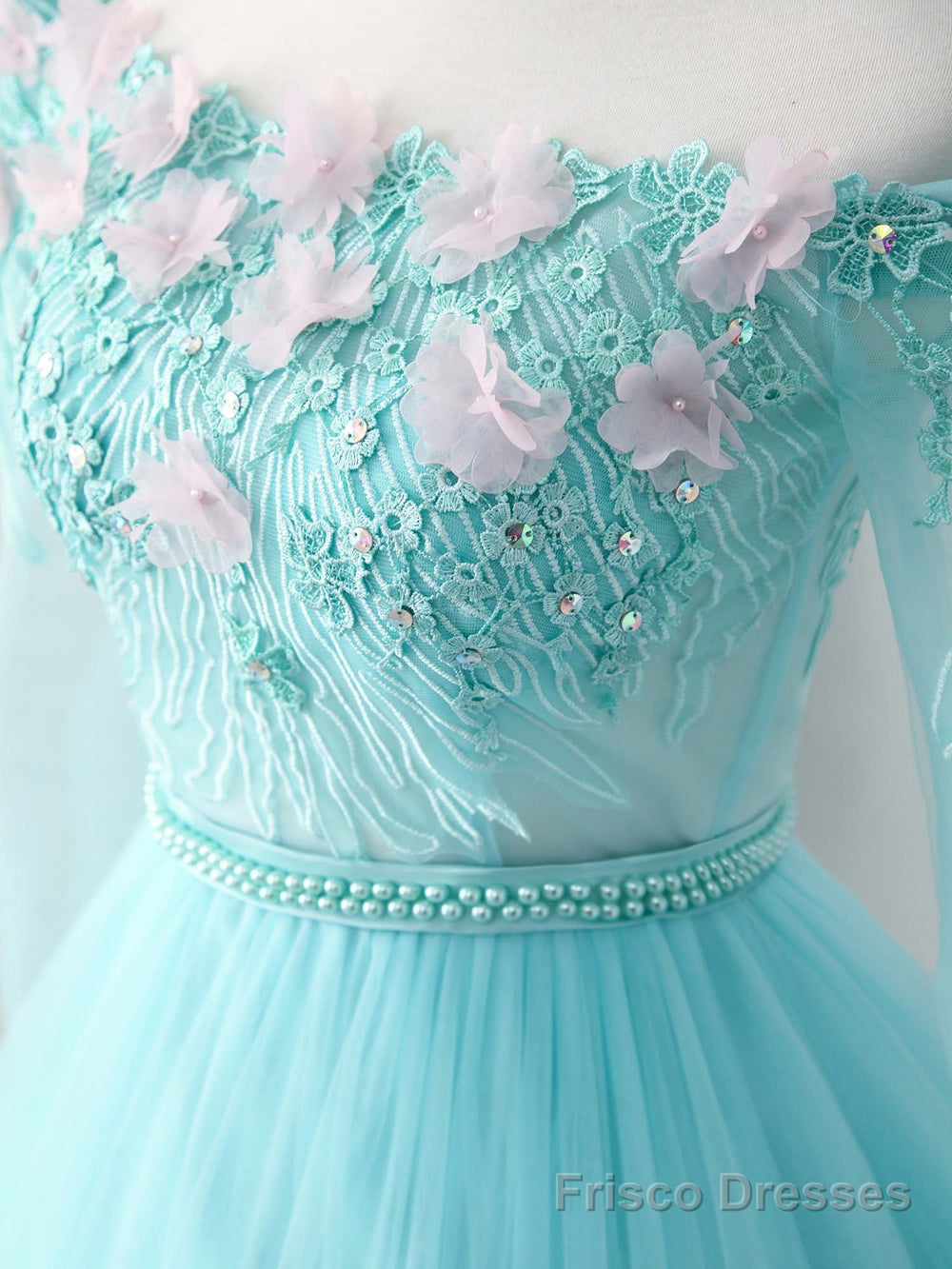 Unique Tulle Lace Applique Long Prom Dress, Green Evening Dress