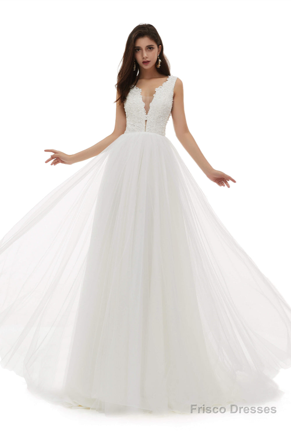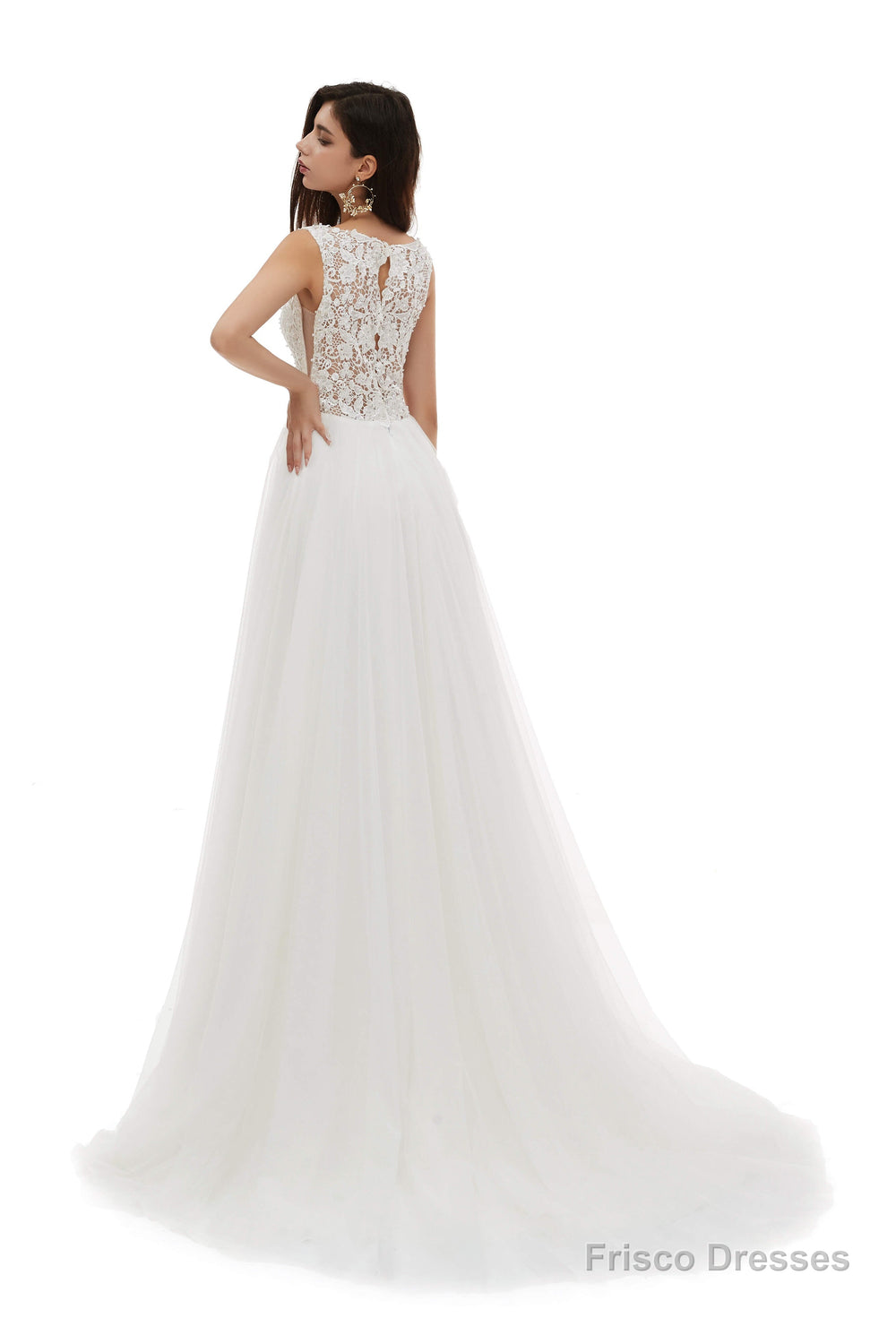 V-Neck Beaded Lace Beaded Applique Tulle Wedding Dresses