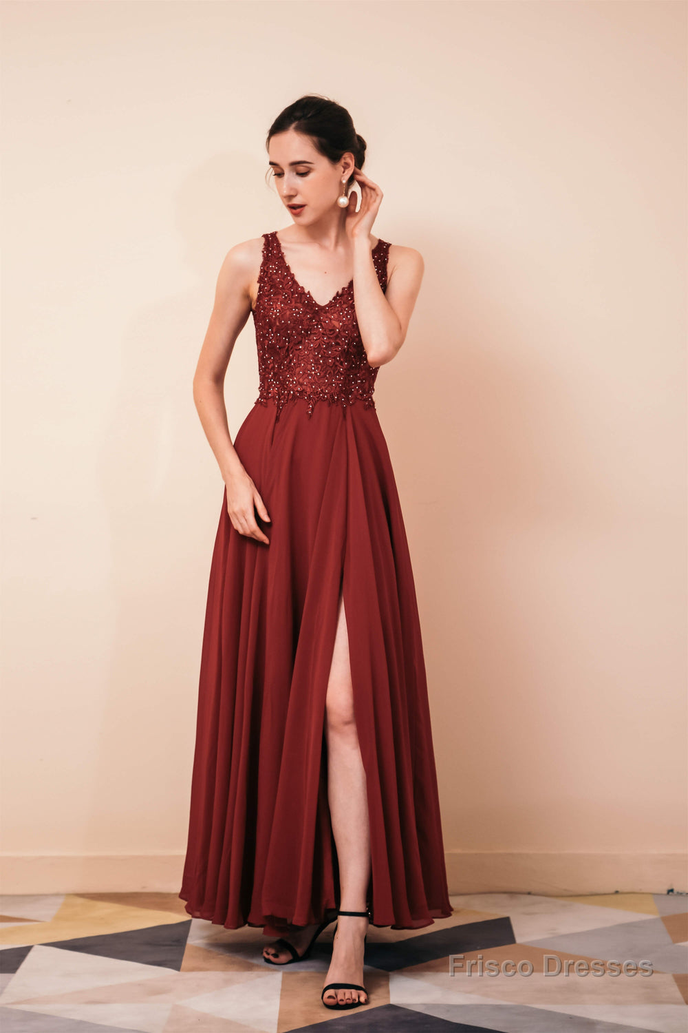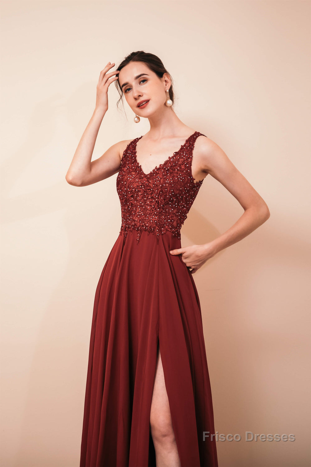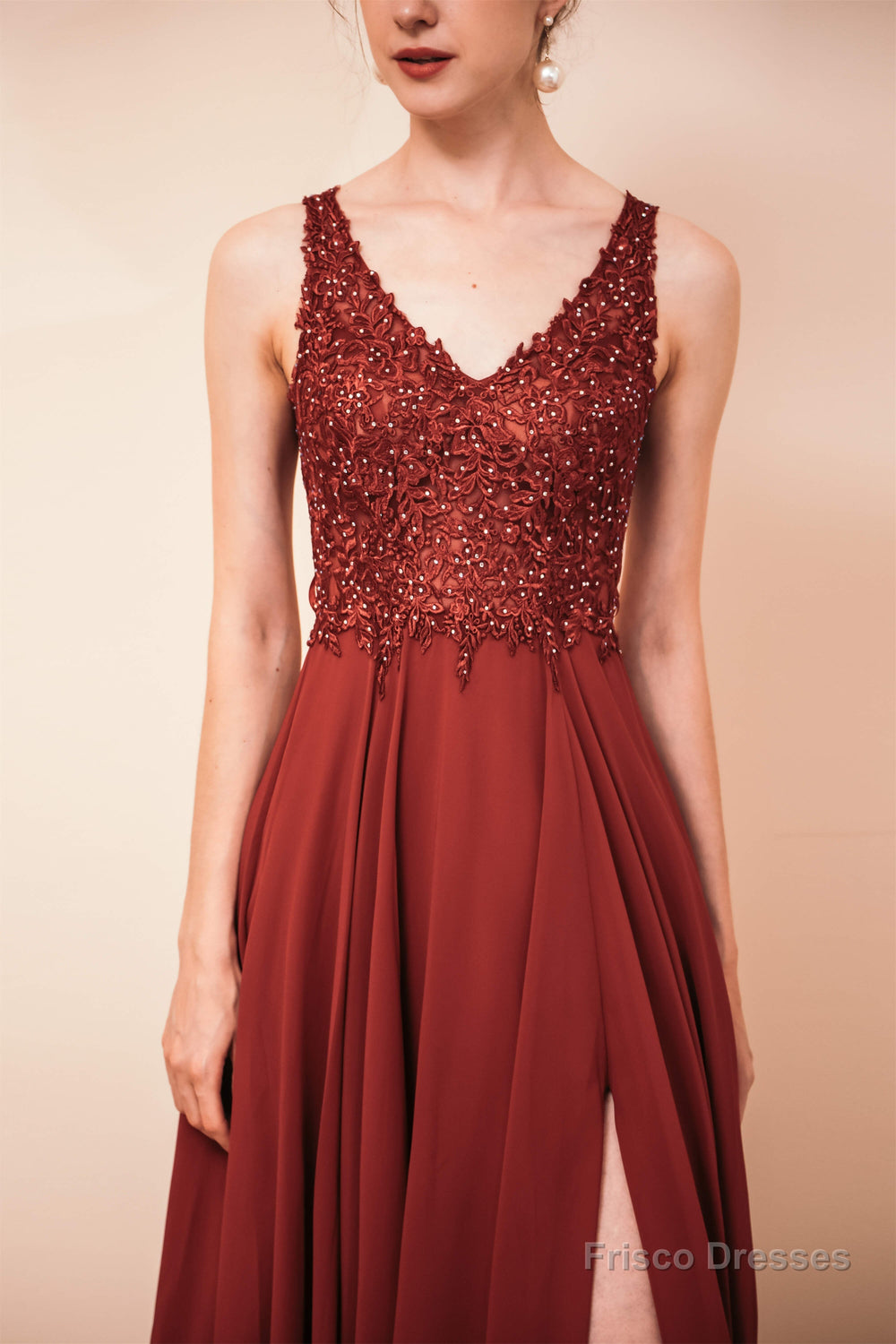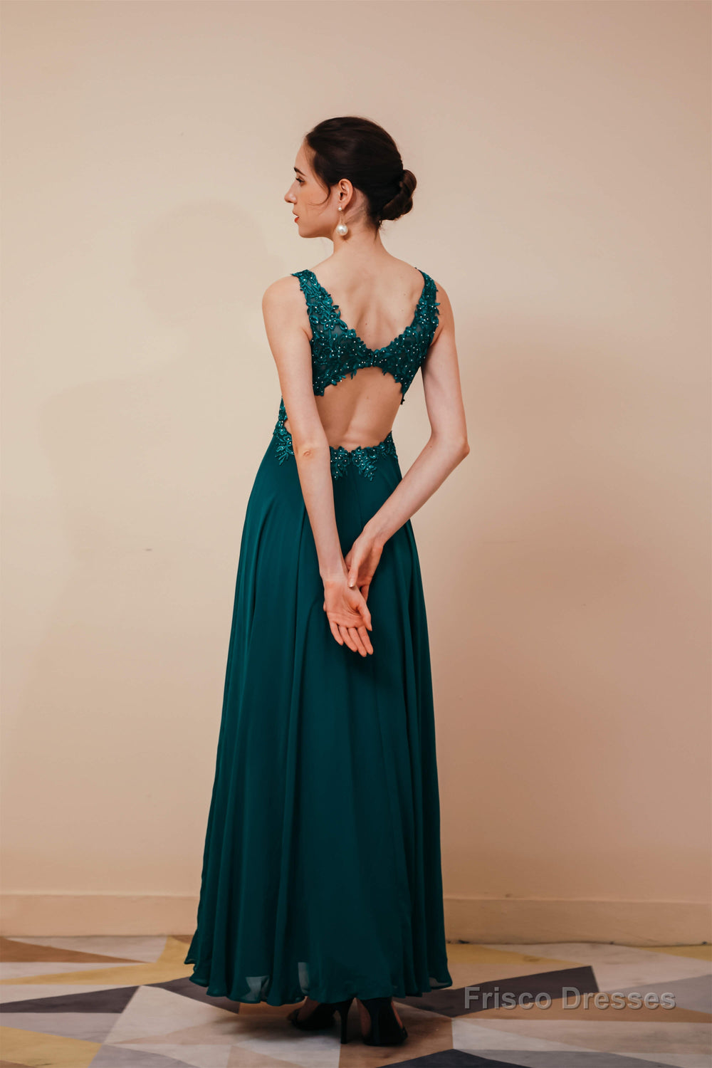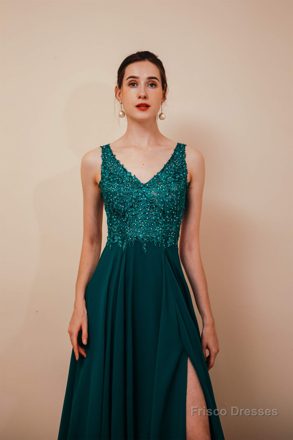 V-Neck Chiffon Appliques A Line Long Prom Dresses