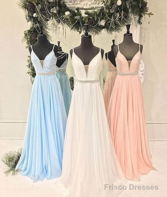 V Neck Chiffon Sequin Long Prom Dress, Cute Formal Dress