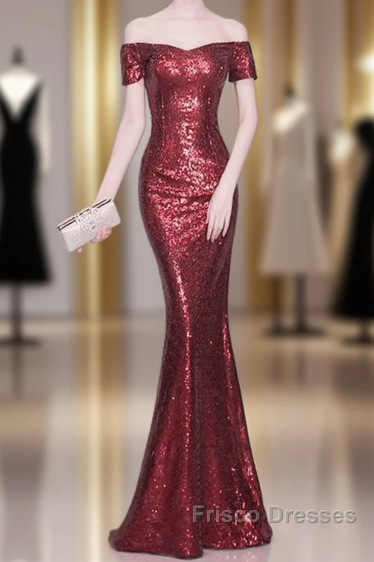V-Neck Off The Shoulder Long Sequin Mermaid Bridesmaid Dress