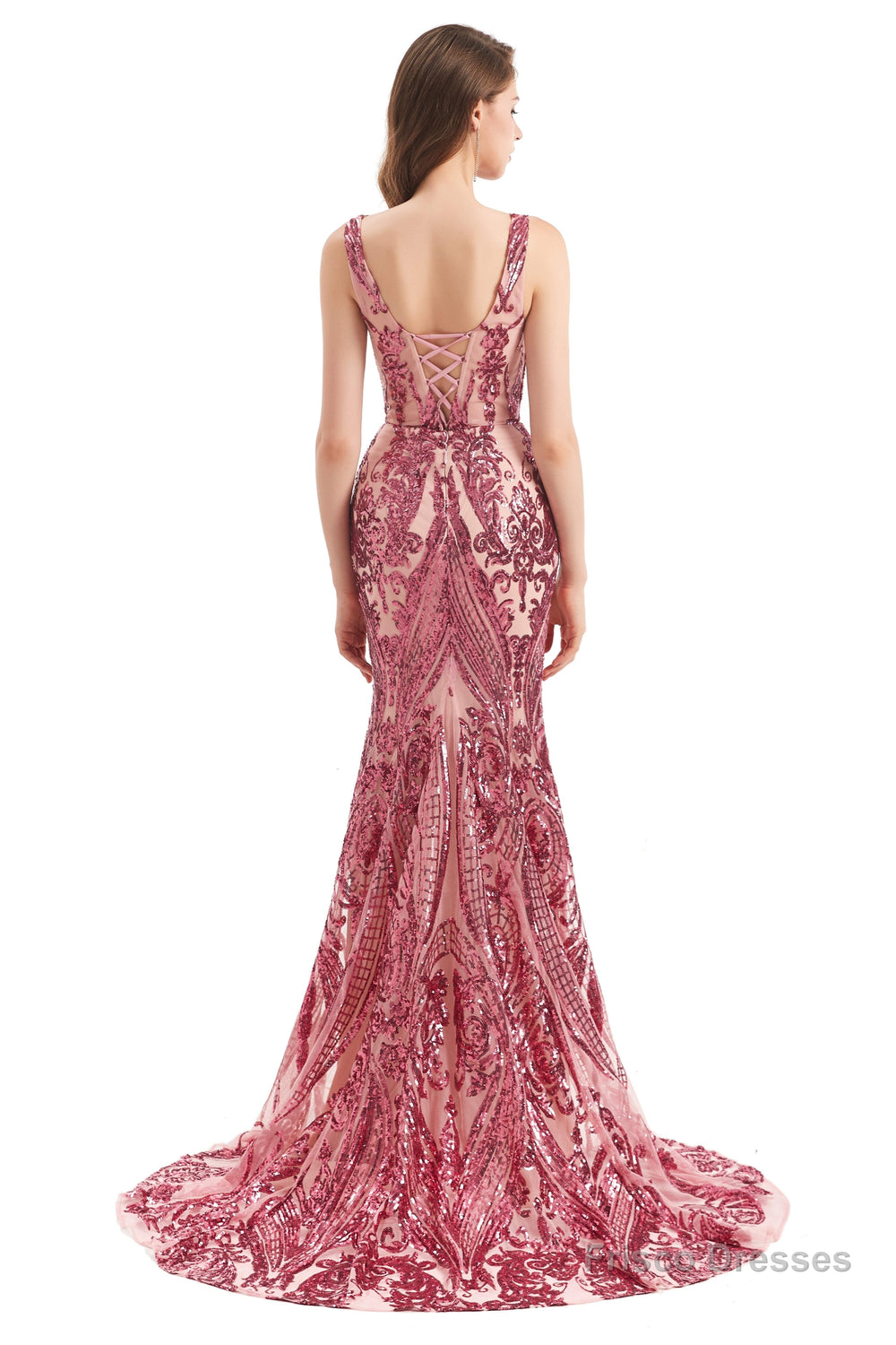 V-Neck Sequins Sleeveless Lace-up Mermaid Prom Dresses
