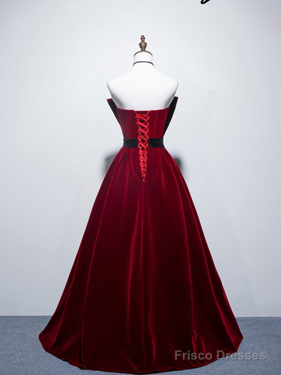 Velvet A Line Burgundy Satin Long Prom Dress, Velvet Bridesmaid Dress