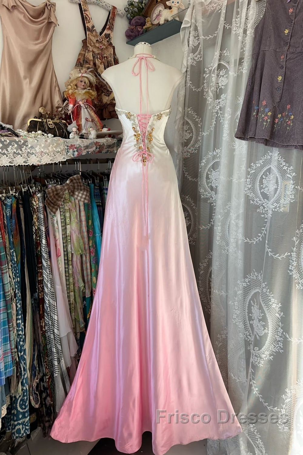 Vintage Mermaid Halter Sleeveless Long Ombre Pink Evening Dress Formal Prom Dress