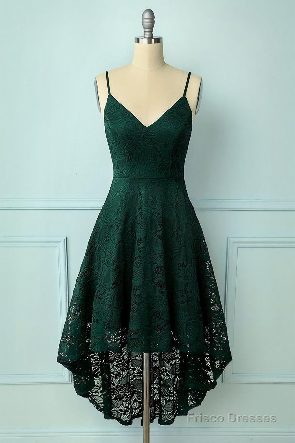 Vintage Style Dark Green Lace Shoulders Straps Prom Dress