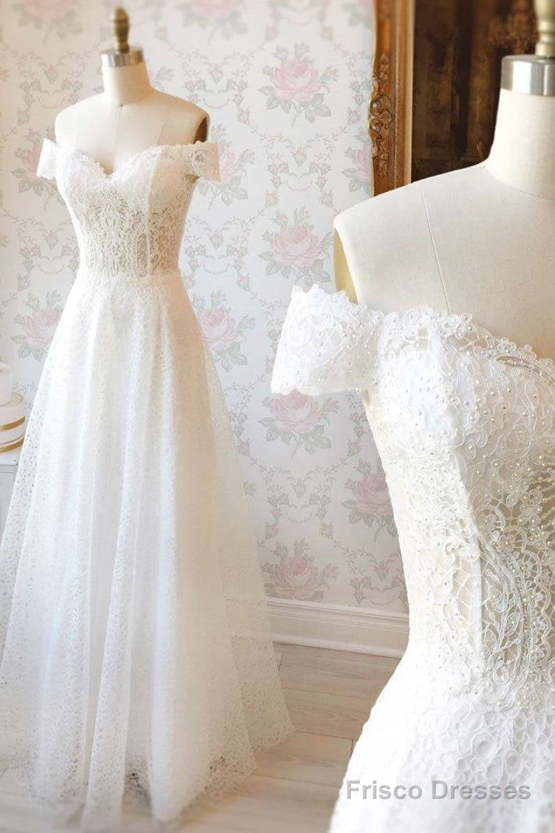 White Lace Off Shoulder Long Prom Dress White Lace Evening Dress