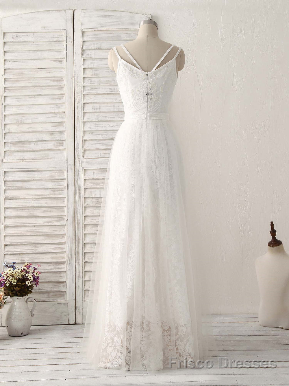 White V Neck Tulle Lace Long Prom Dress White Evening Dress