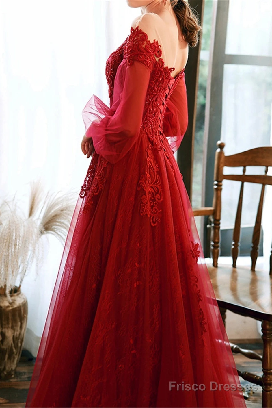 Wine Red Prom Dress Lace Evening Dress Party Dress, A-Line Wine Red Formal Dress