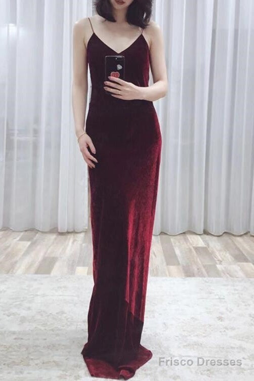 Wine Red Straps Sexy Velvet Evening Gown, Long Party Prom Dresses