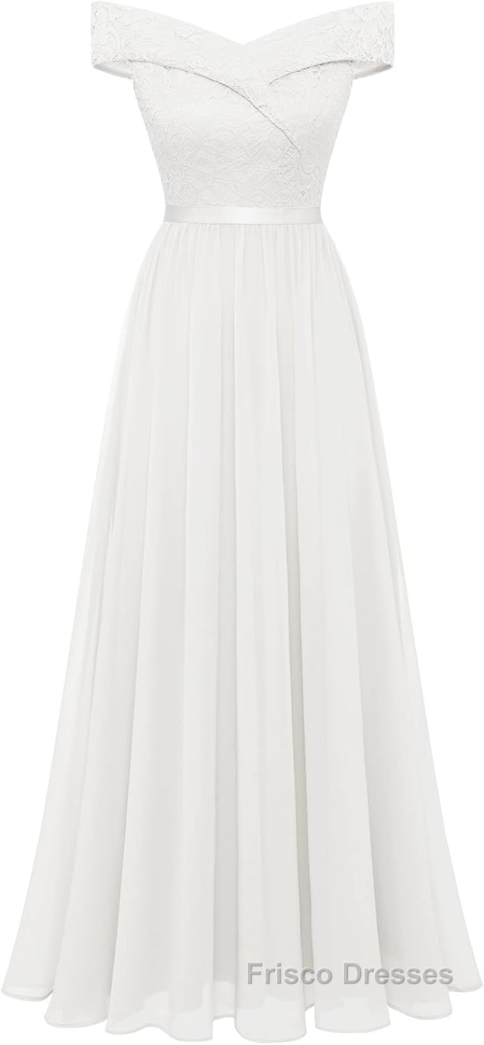 Womens Lace Bridesmaid Dresses A-Line Off Shoulder Floral Lace Chiffon Formal Prom Dresses